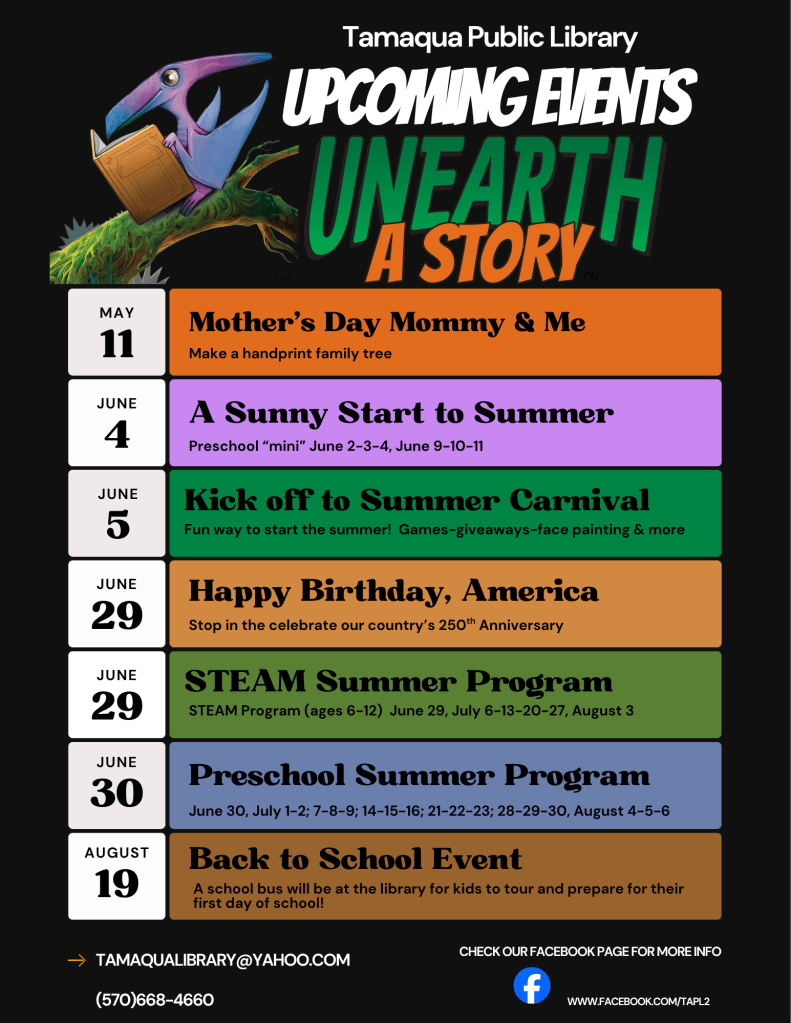 Below are our links to social media and other resources we have available through the Tamaqua Public Library!
